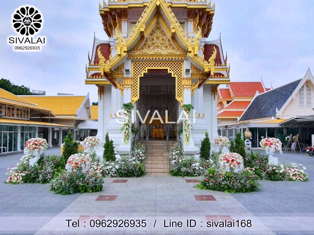 กุหลาบนอก ลิลลี่ คาร์เนชั่น ไลเซนทัส ยิปโซ เบญจมาศ มัม กล้วยไม้ คัตเตอร์ ฟาแลน(ปลอม) *** กรณีต้องการของจริง เพิ่ม 5,000 บาท – สามารถเปลี่ยนสีดอกไม้ตามที่ต้องการได้ ดอกไม้อาจเปลี่ยนแปลงไปตามฤดูการ – อุปกรณ์ต่างๆเป็นการให้ยืมเพื่อจัดงานเท่านั้น นำกลับหลังเสร็จงาน – ทุกงานมัดจำงาน 30%